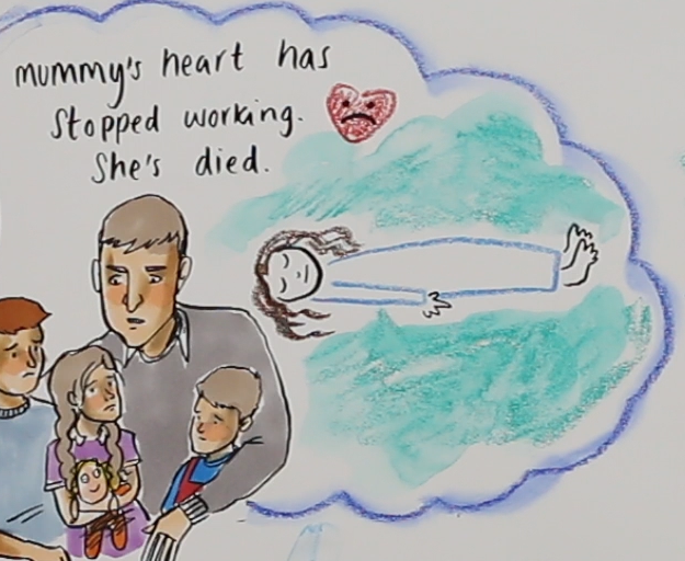 Use clear language e.g. “I am sorry but your daddy’s heart was poorly and has stopped working. It won’t start working again and so that means that he has died”.