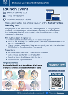 The Palliative Care Learning Hub brings together free, high-quality learning resources in one accessible online space, supporting the learning and development needs of Scotland’s health and social care workforce. Resources are aligned with the refreshed 2025 Palliative Care Education framework.